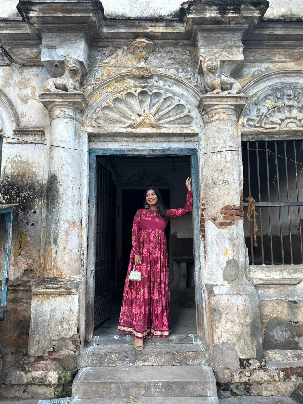 Style Note: Elegant crepe silk kurta with a high neckline and 3/4th sleeves, designed for comfort and style.